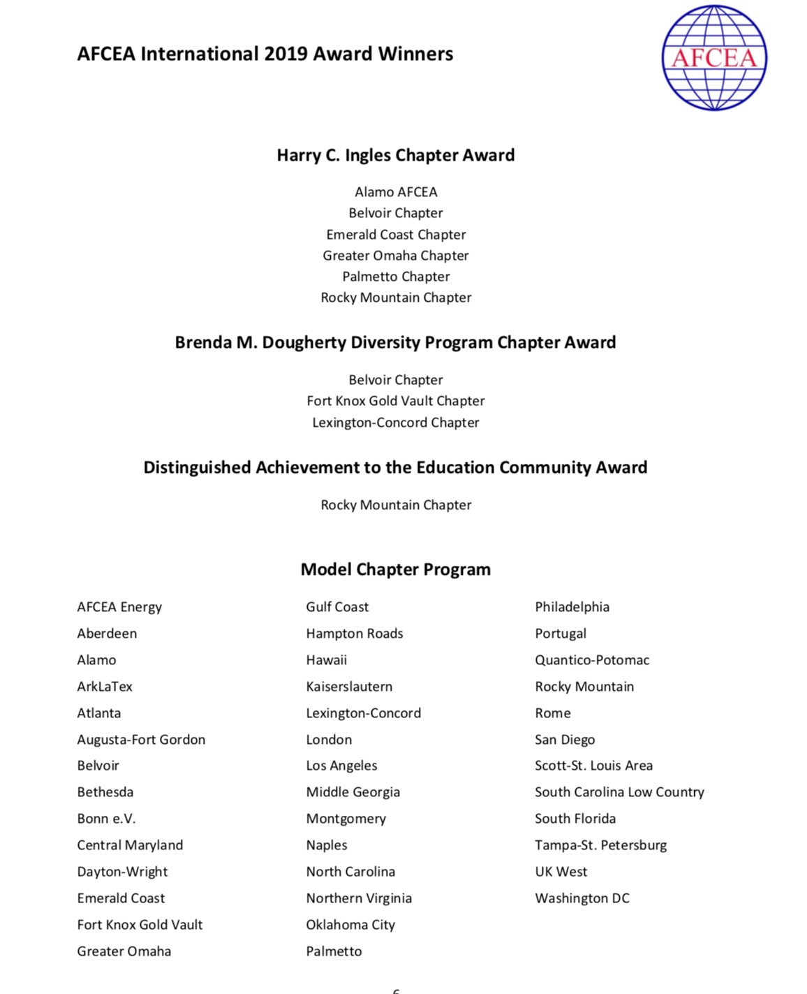 AFCEA International è un’associazione senza scopo di lucro che che si rivolge ai militari, al governo, all’industria e alle accademie in qualità di foro etico per diffondere le conoscenze specialistiche dei settori menzionati ed incrementare le partnership nei settori delle telecomunicazioni, IT, intelligence e sicurezza globale. AFCEA sostiene la sicurezza globale incoraggiando una relazione cooperativa e stretta tra le Agenzie Statali, i militari e le industrie.